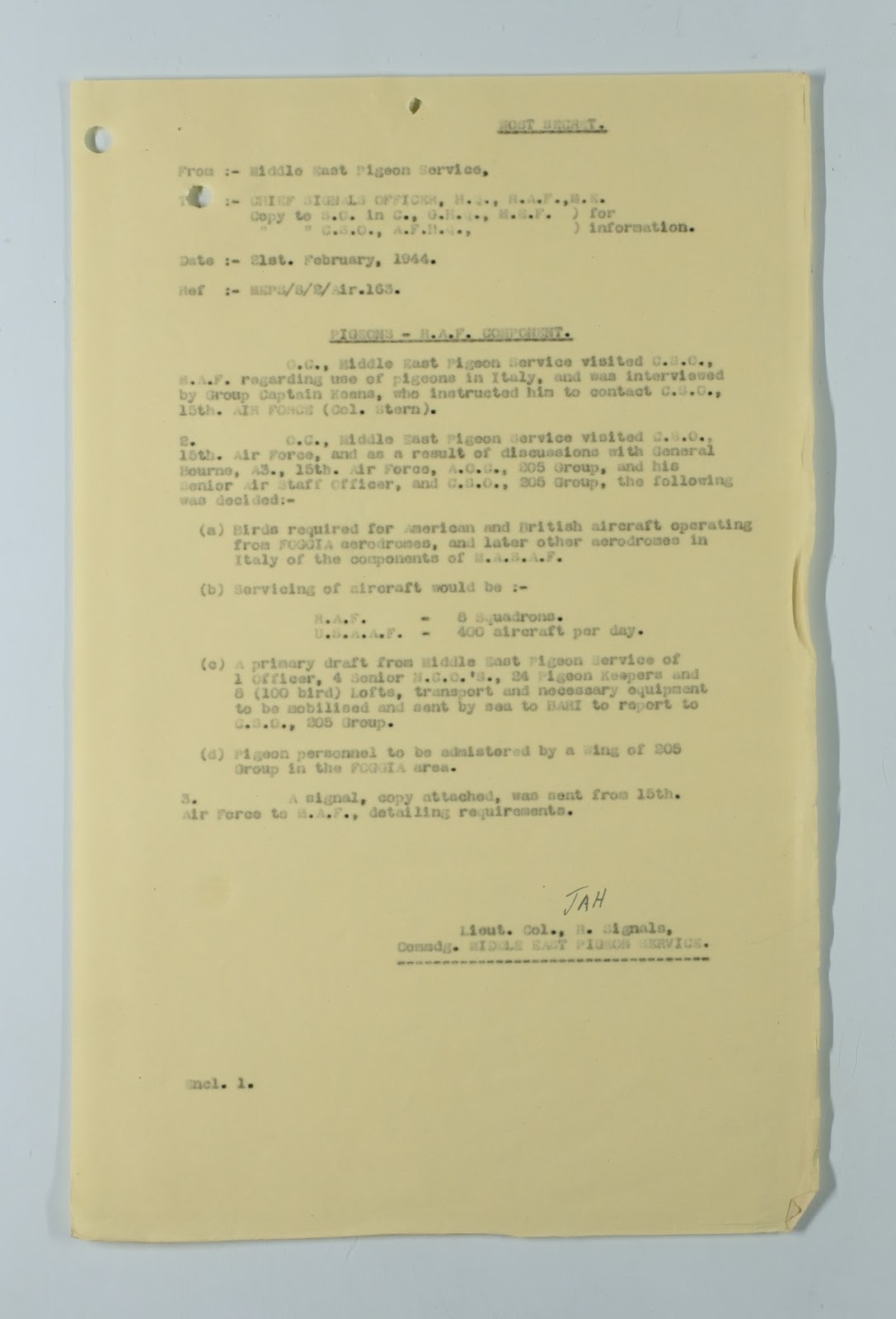 Middle East Pigeon Service: NOMAD pigeons, 1943, Notes on message, 1944